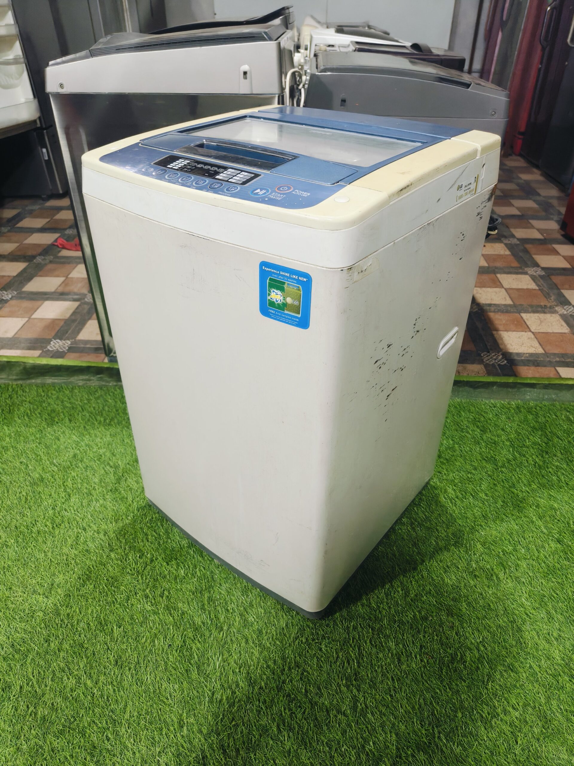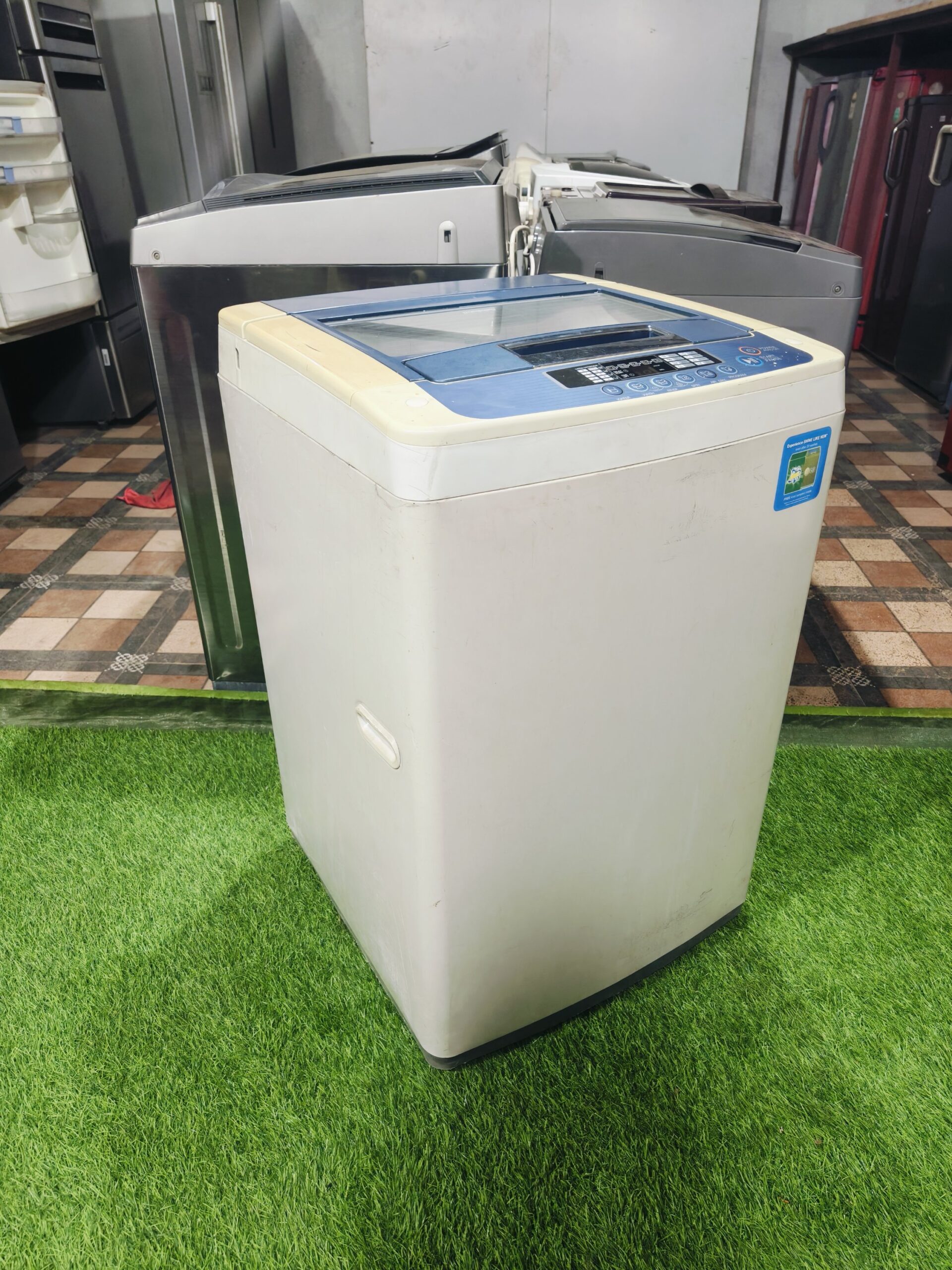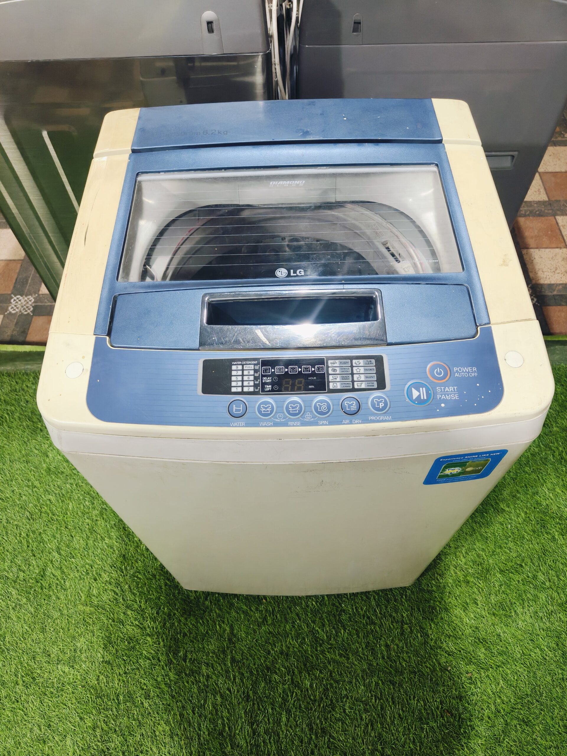 LG Fuzzy Logic Turbo Drum fully automatic top load washing machine with a 6.2 kg capacity, ideal for small to medium families.