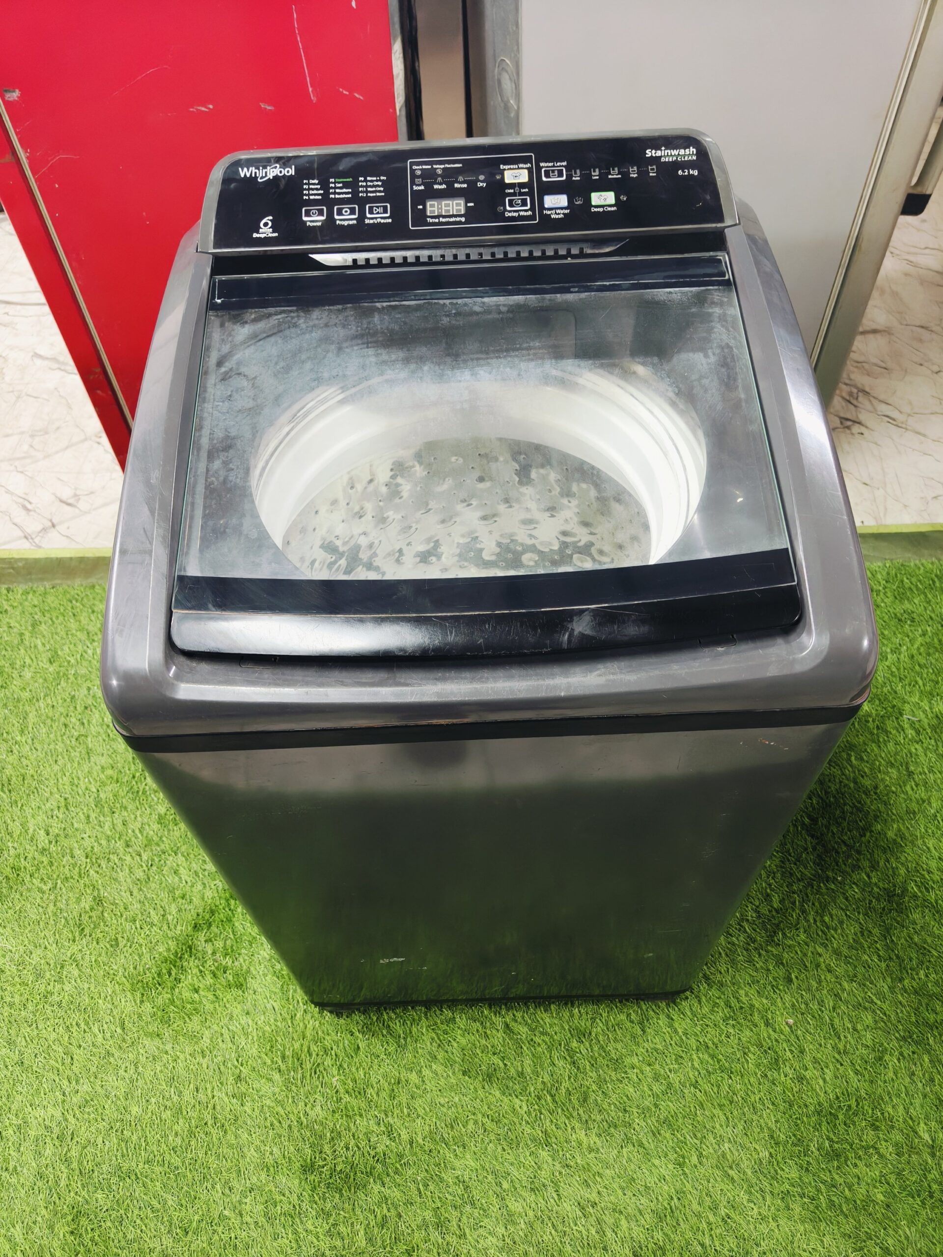 Whirlpool 6th Sense Stain Wash Deep Clean fully automatic top load washing machine with 6.2 kg capacity.